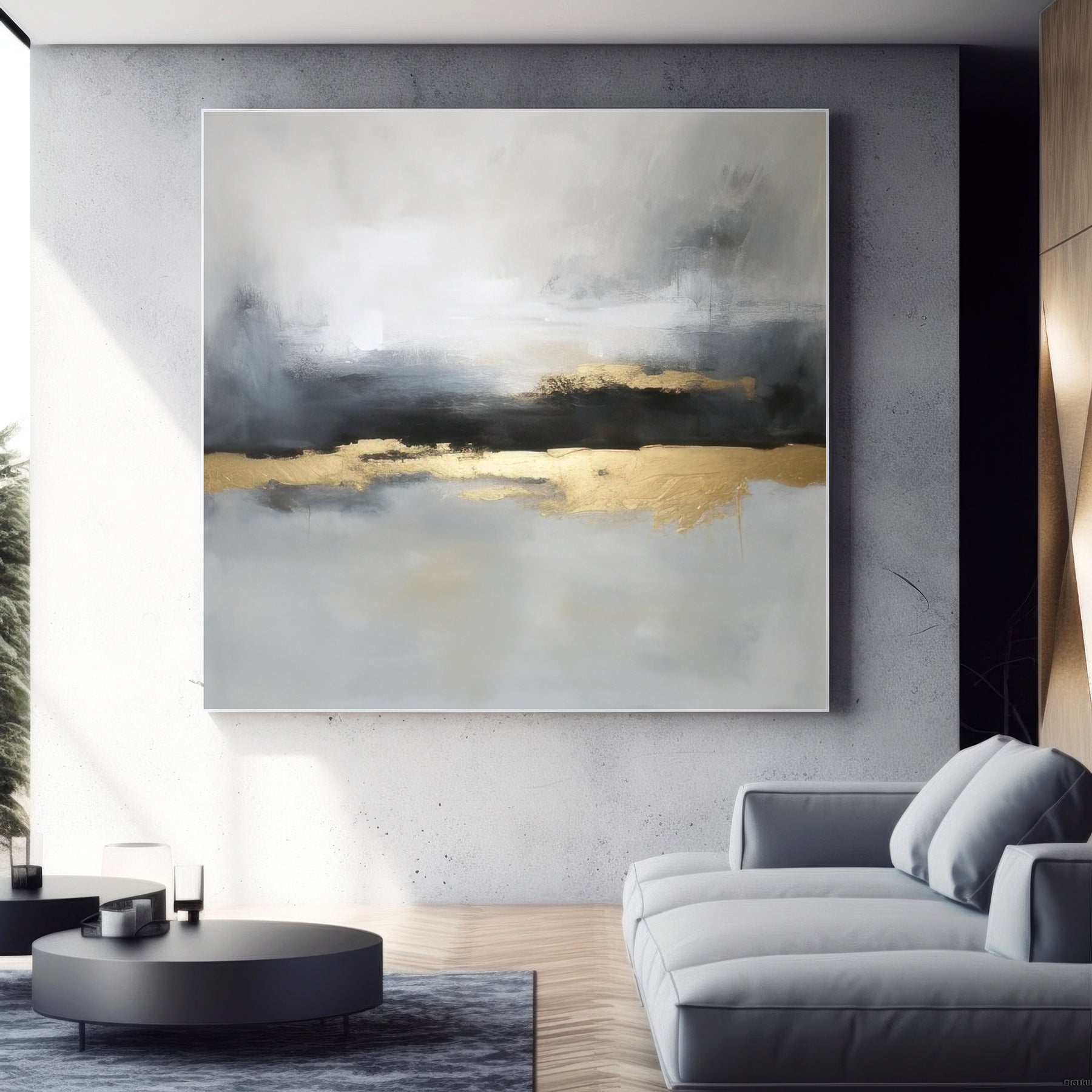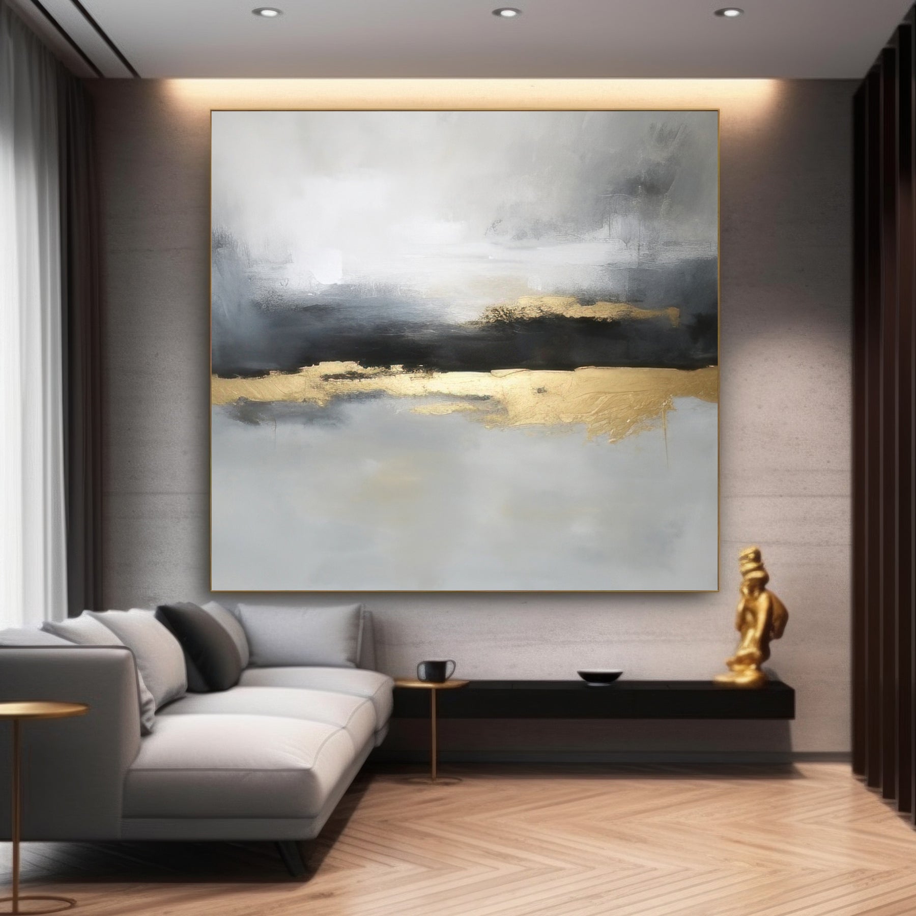 Gray Gold Abstract Geometric Canvas Art