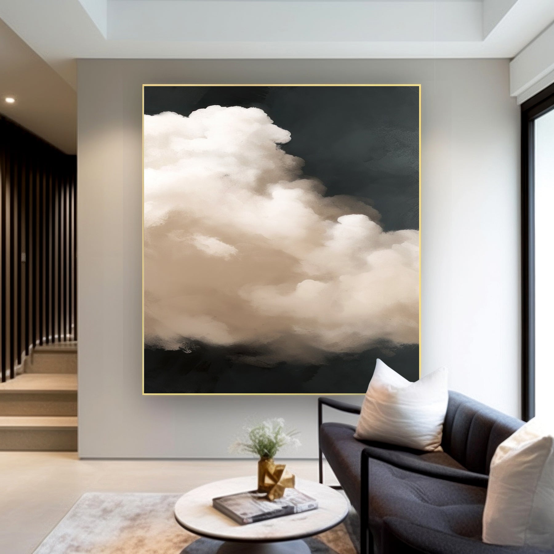 Beige Black Abstract Geometric Canvas Art
