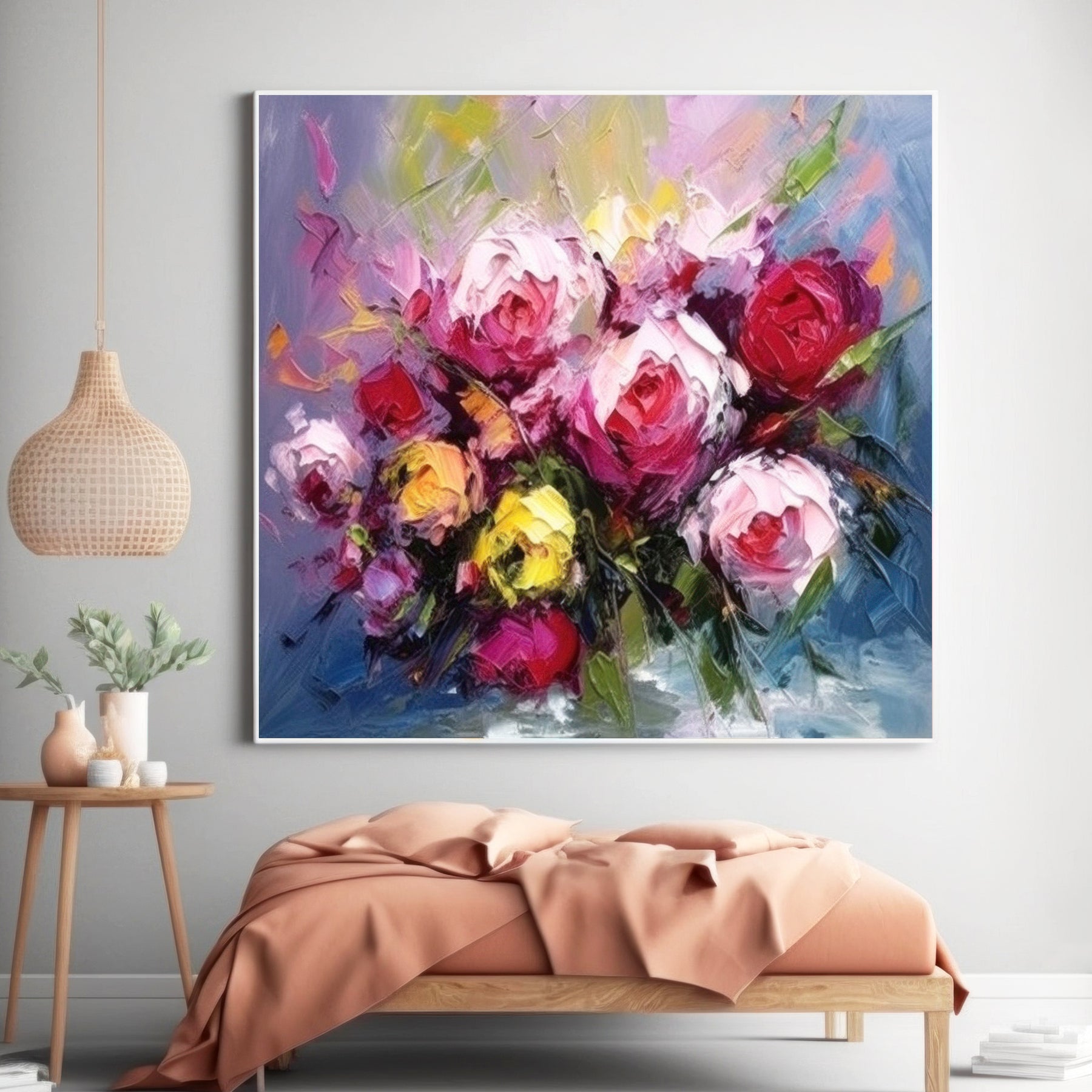 Pink Green Floral Impressionist Canvas Art