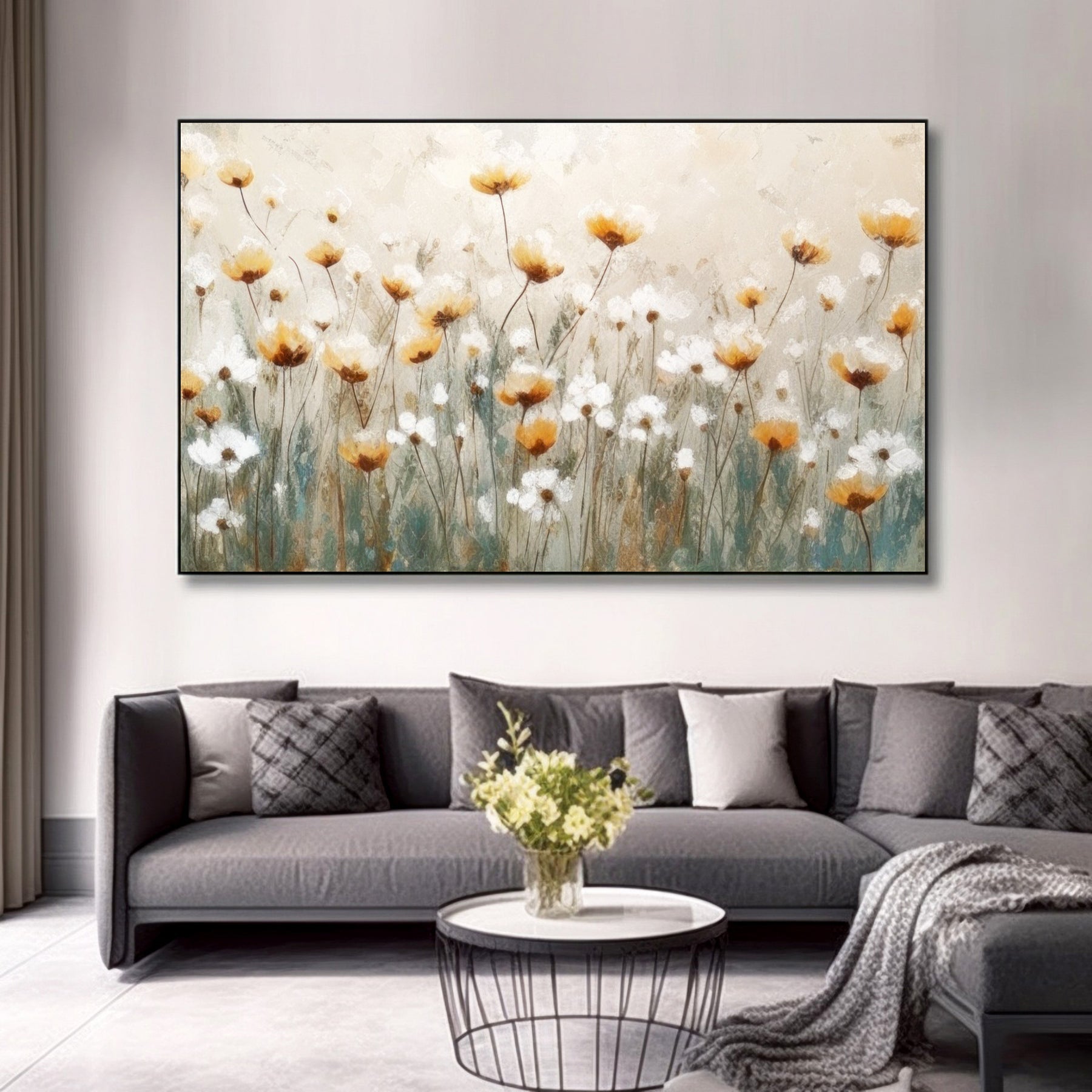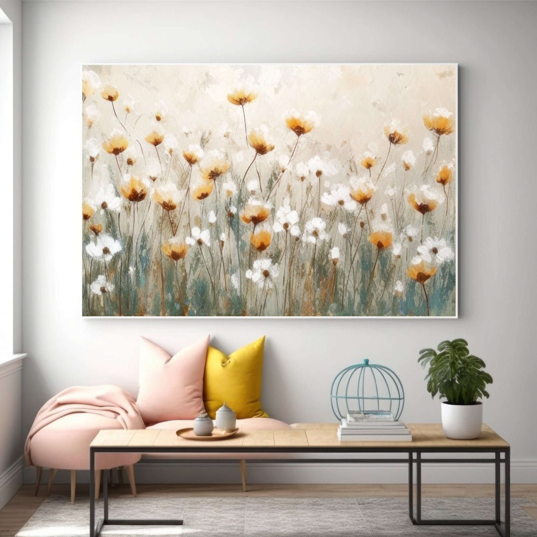 Yellow White Floral Impressionist Canvas Art