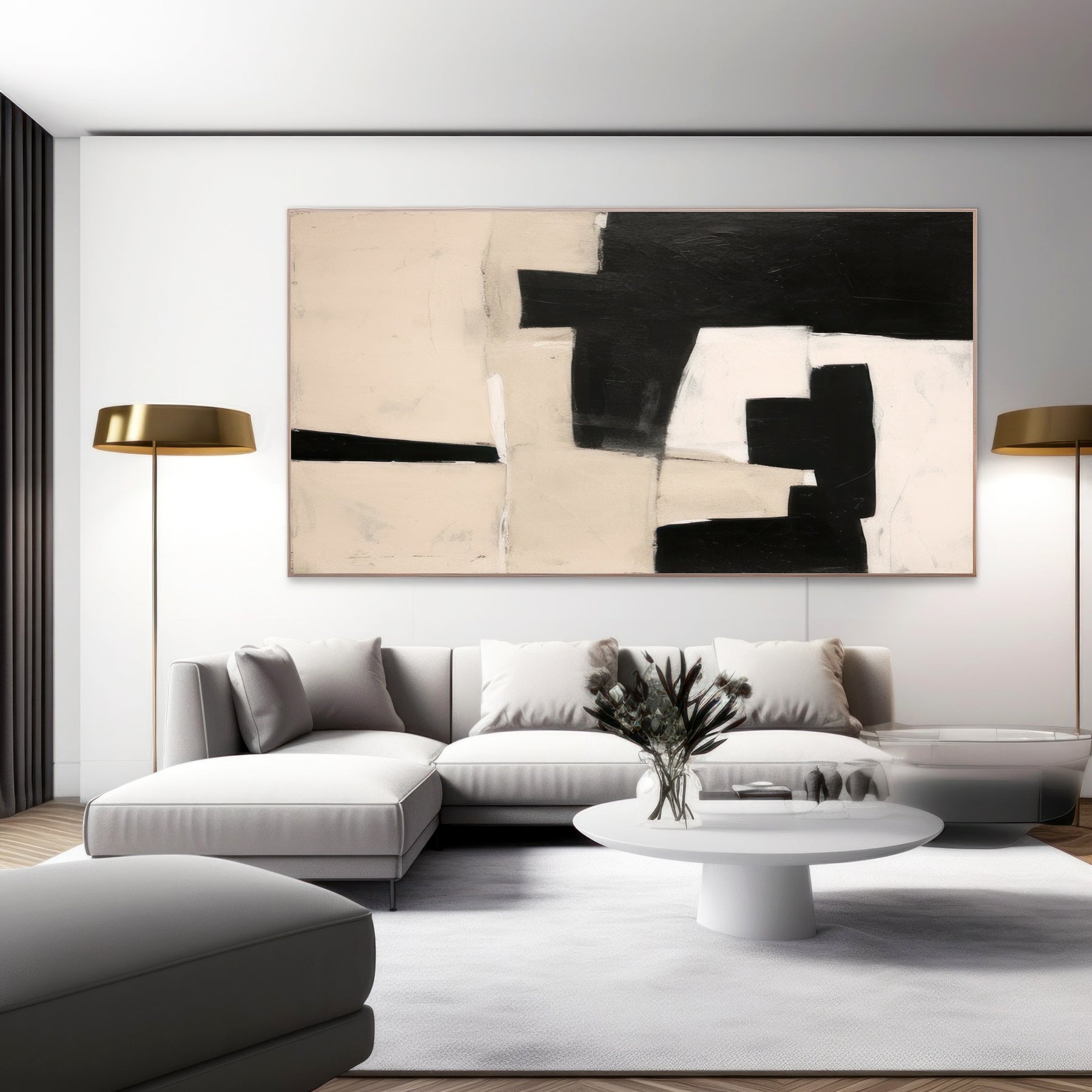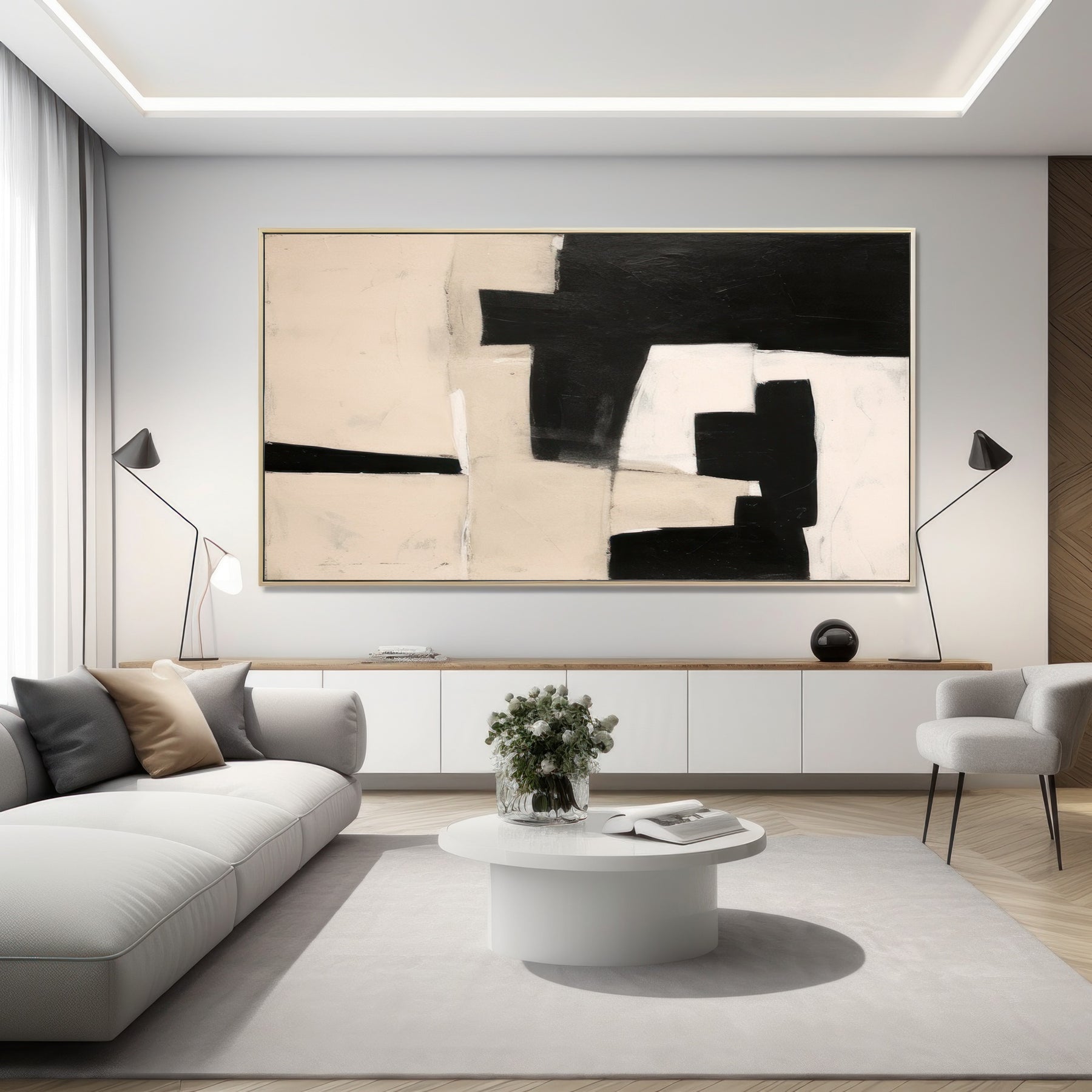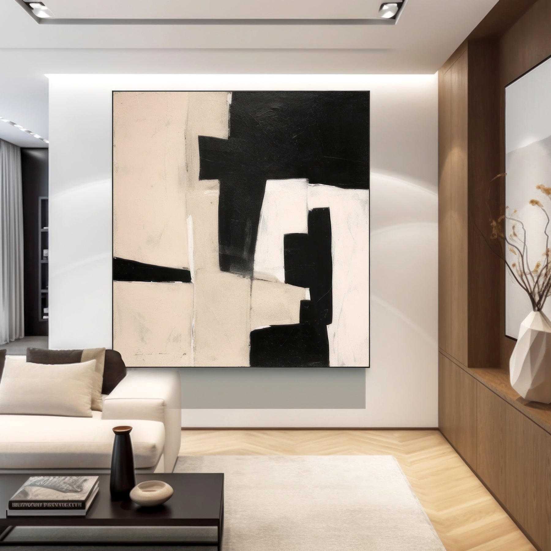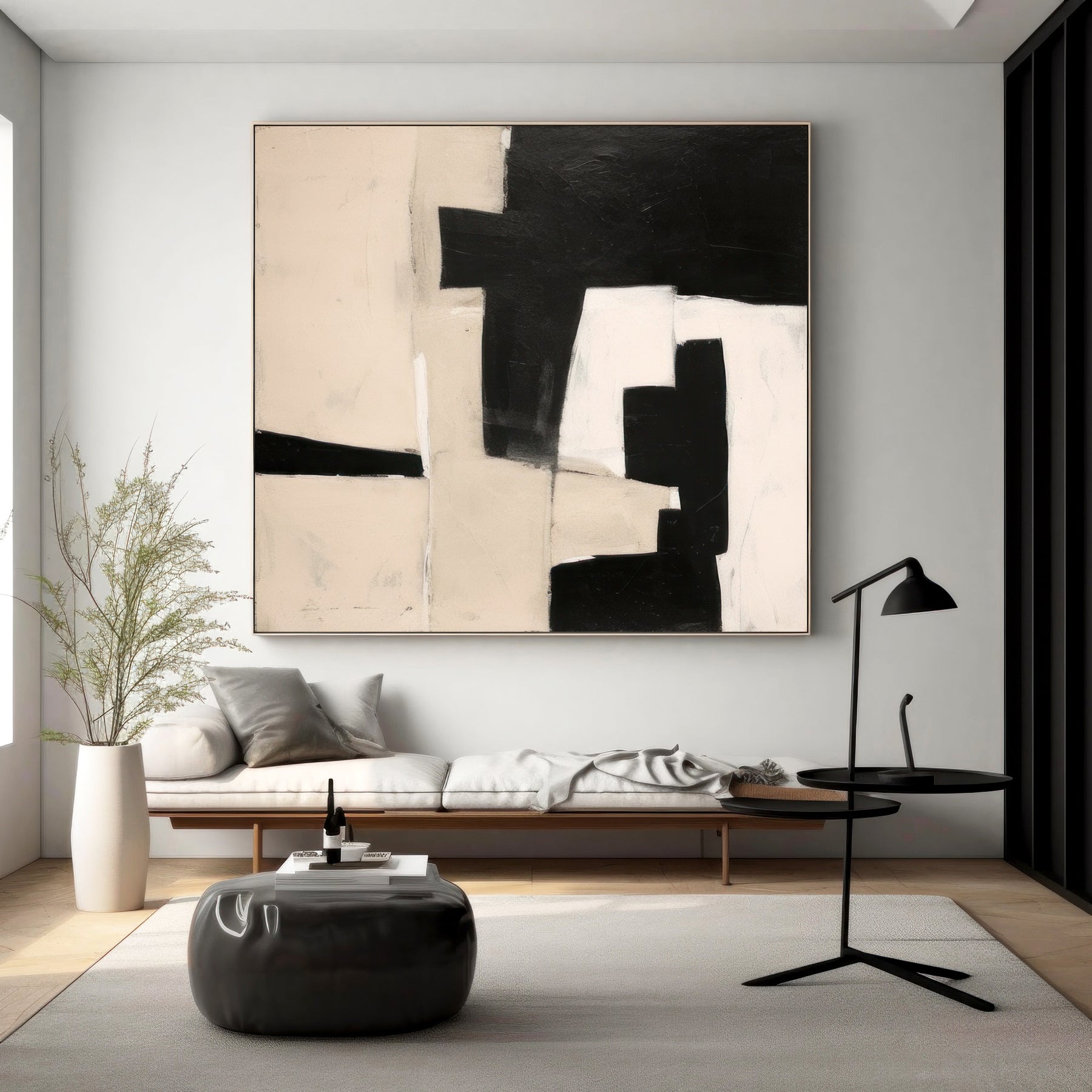 Black Beige Geometric Minimalist Canvas Art