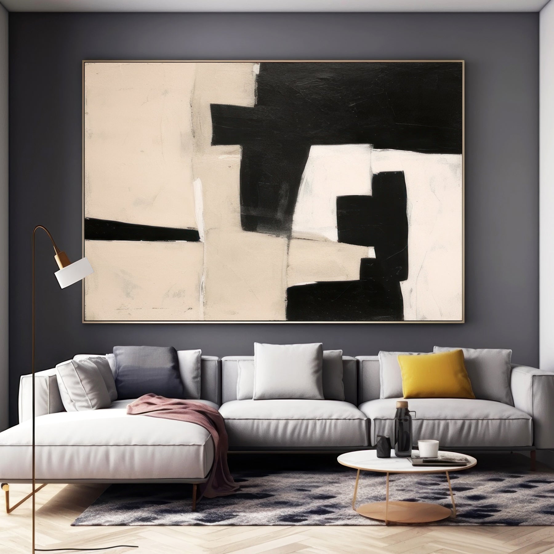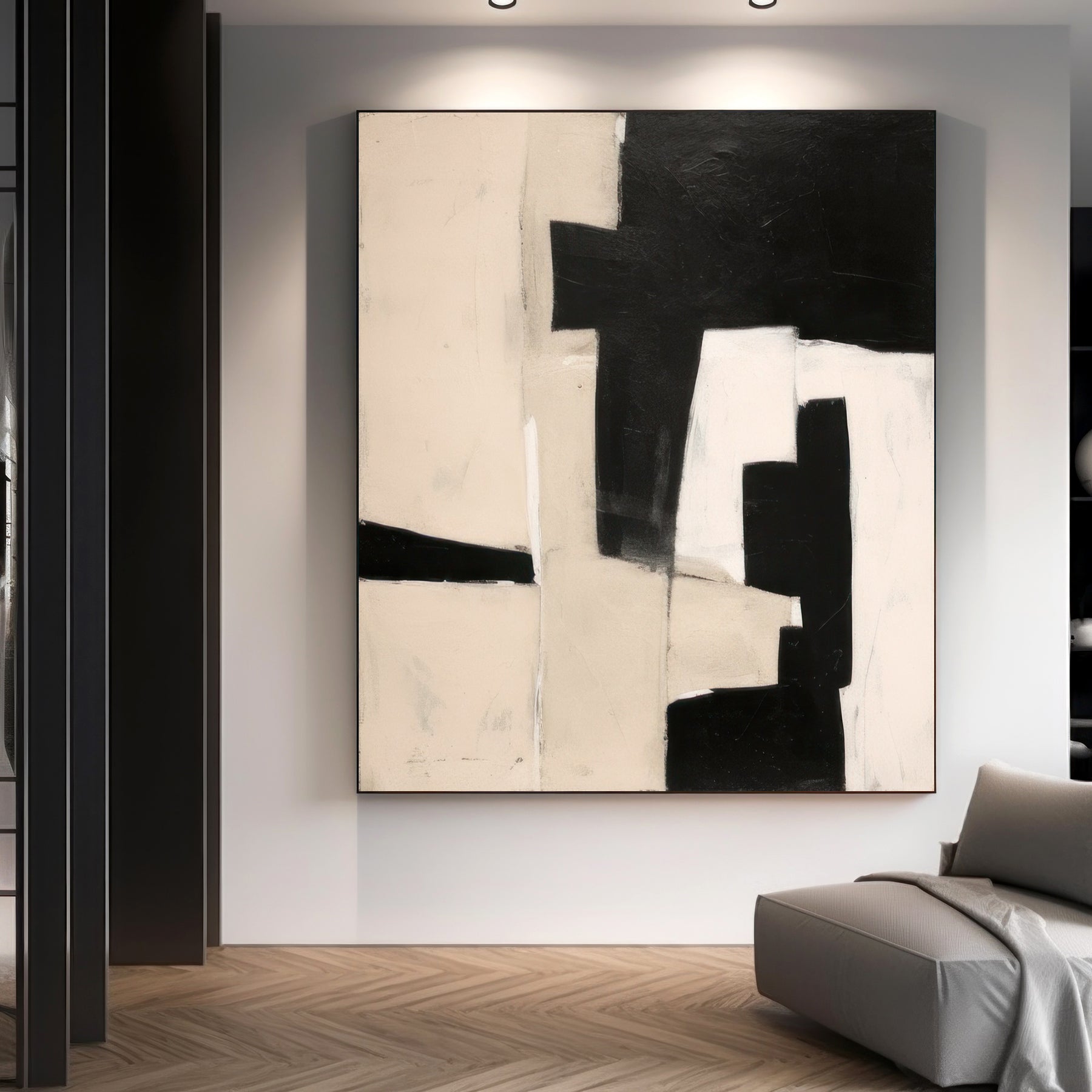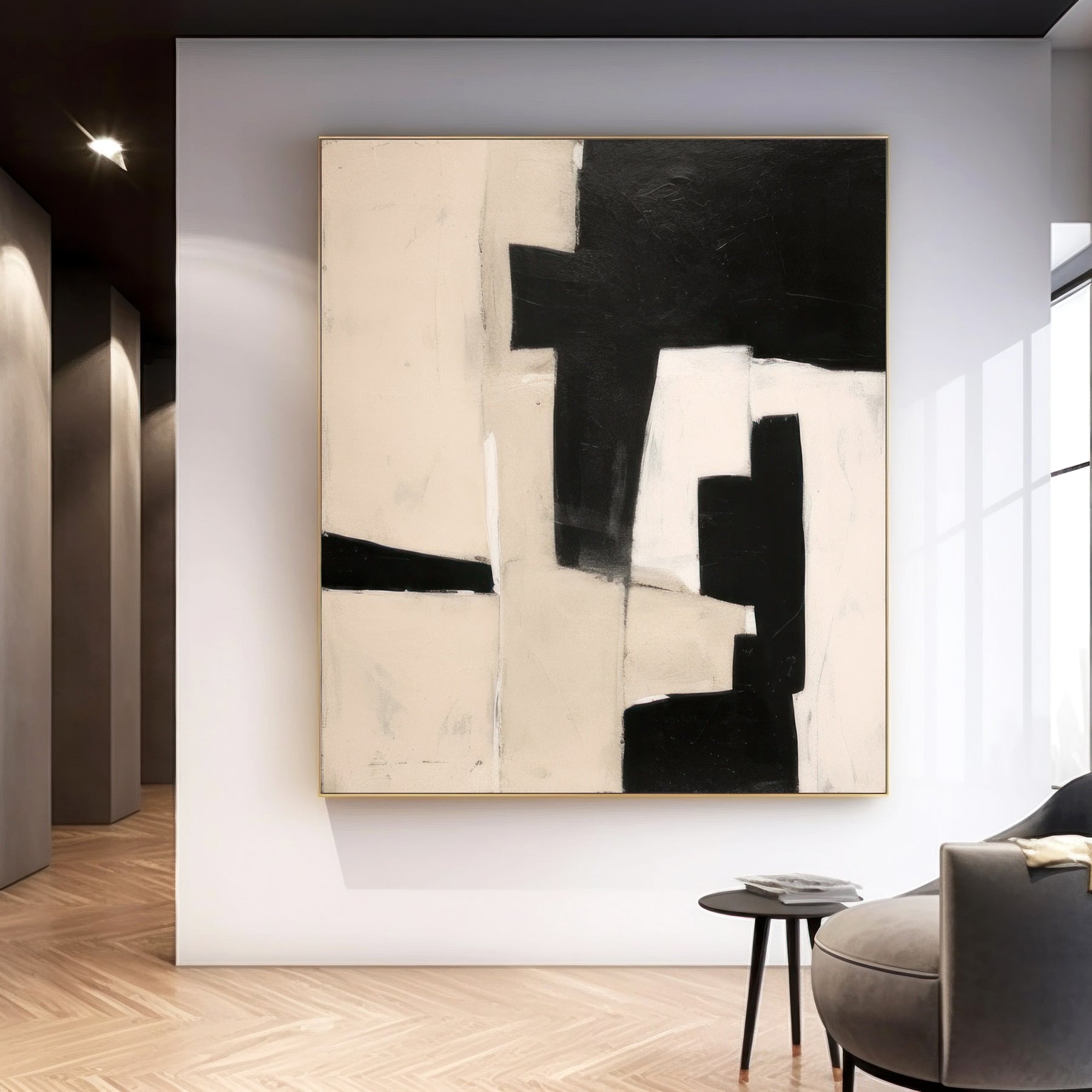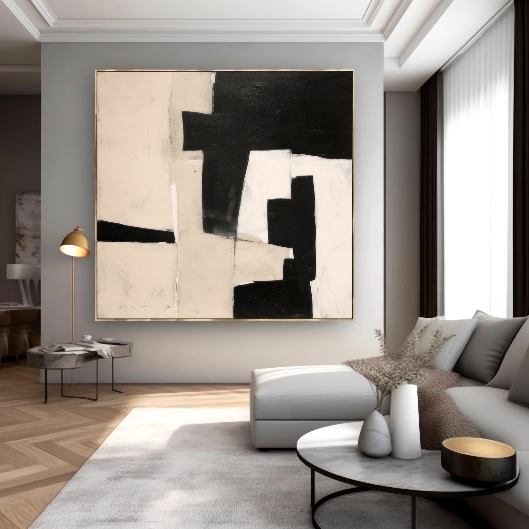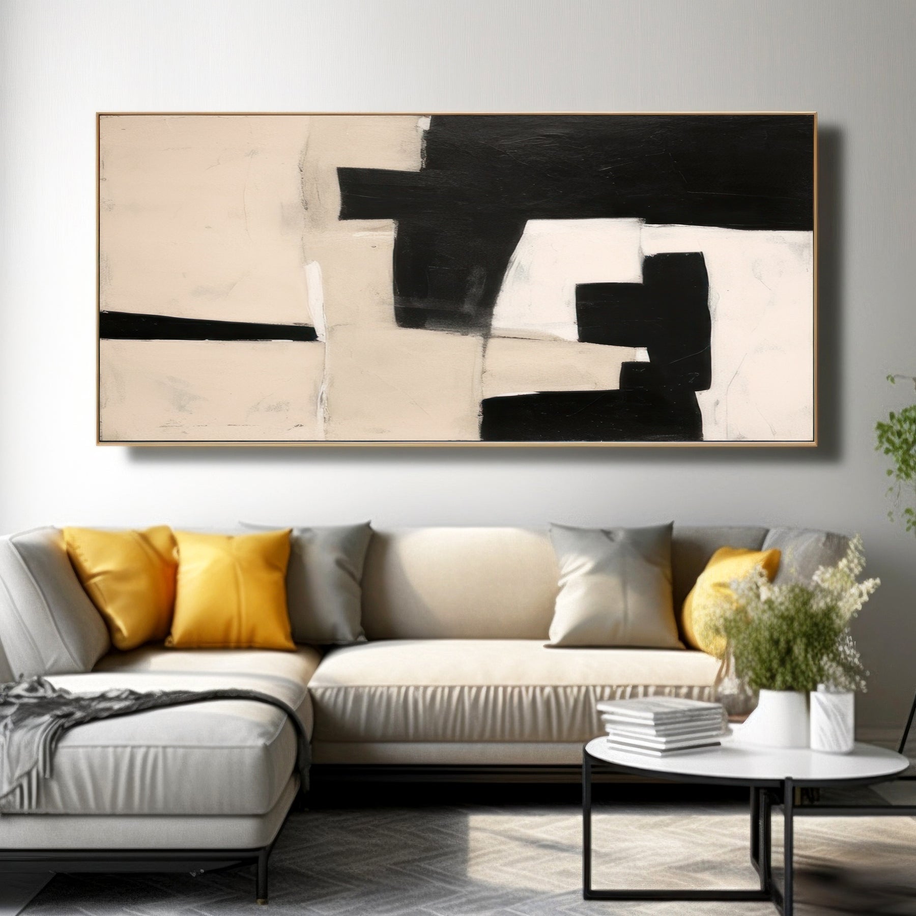 Black Beige Geometric Minimalist Canvas Art