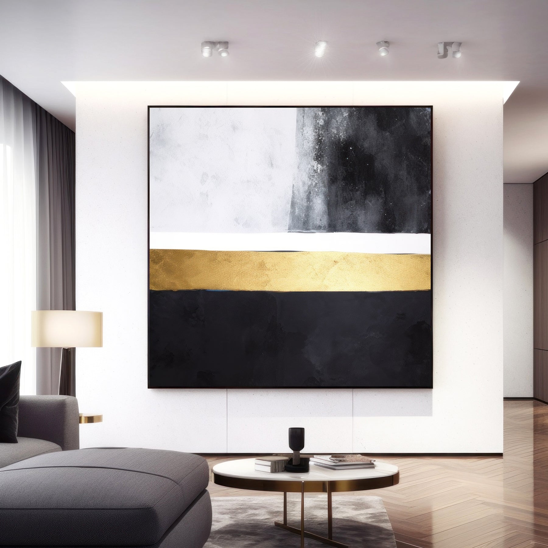 Black Gold Geometric Abstract Canvas Art
