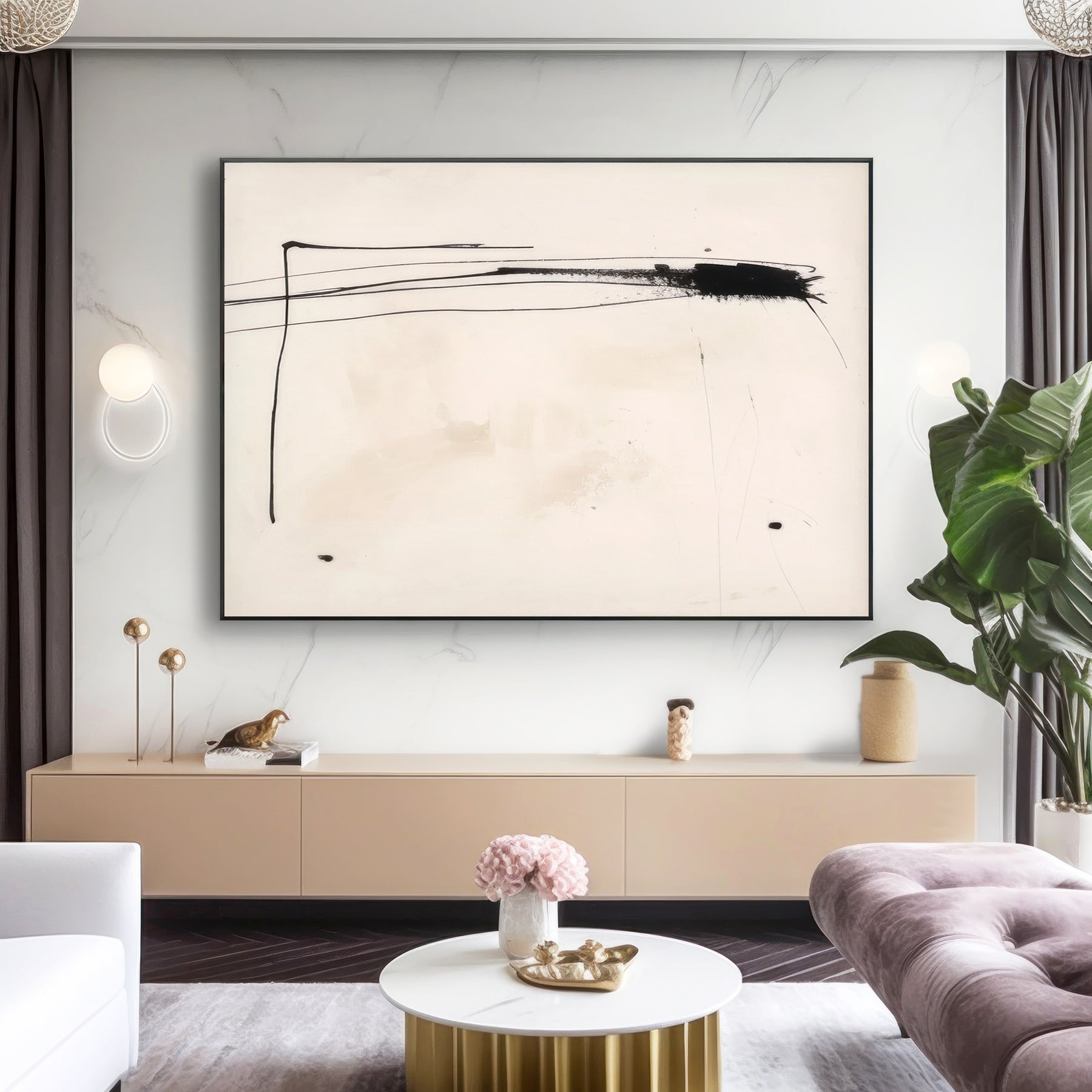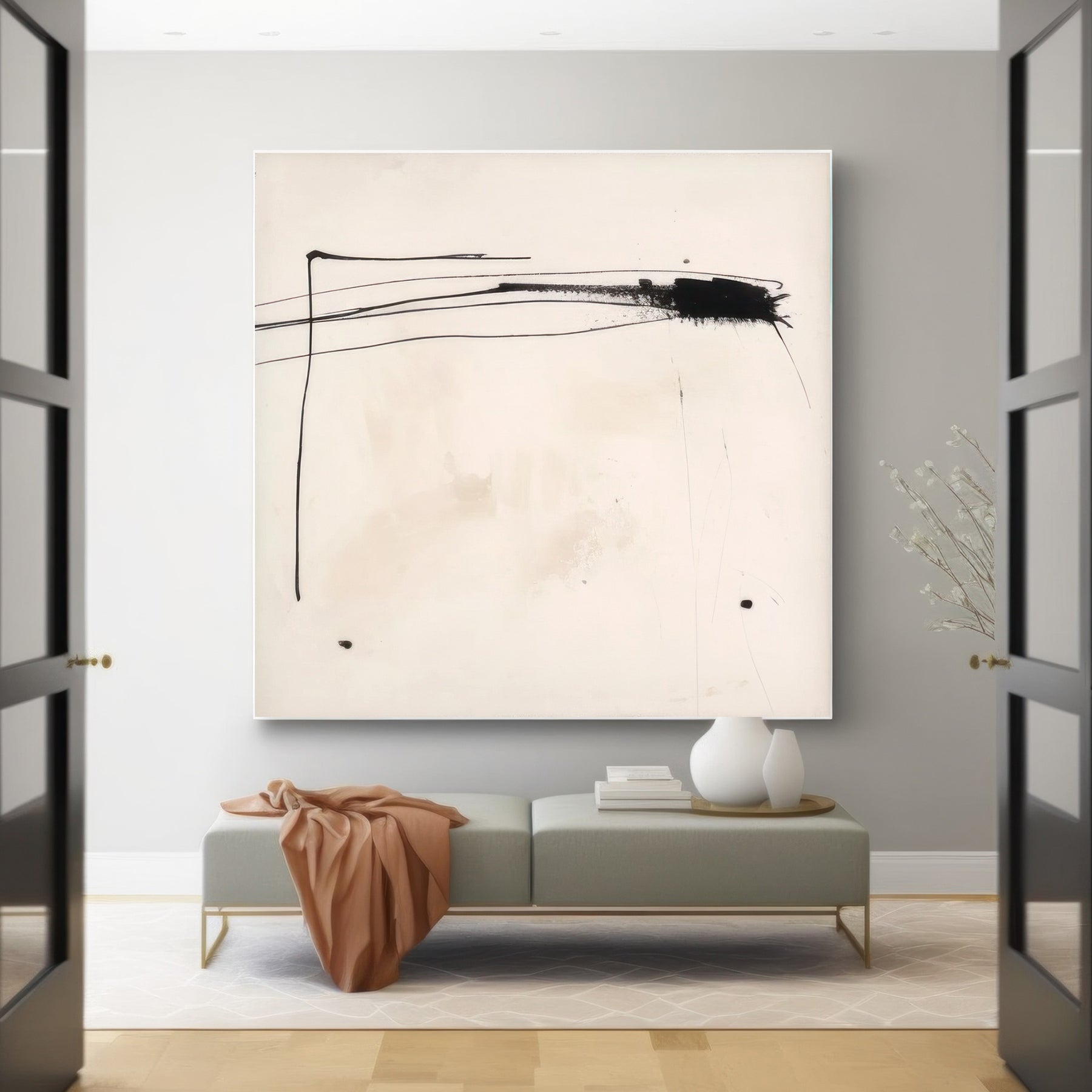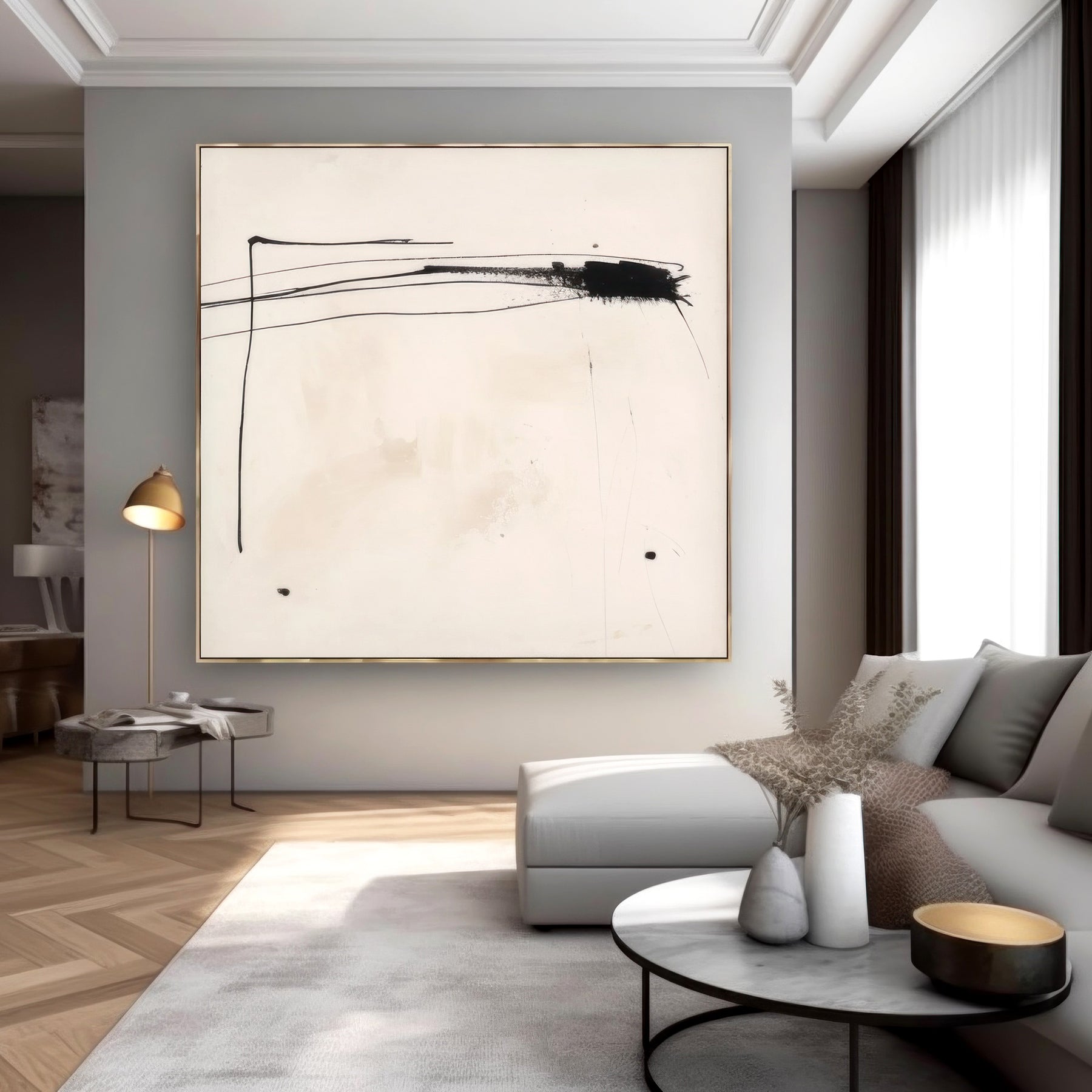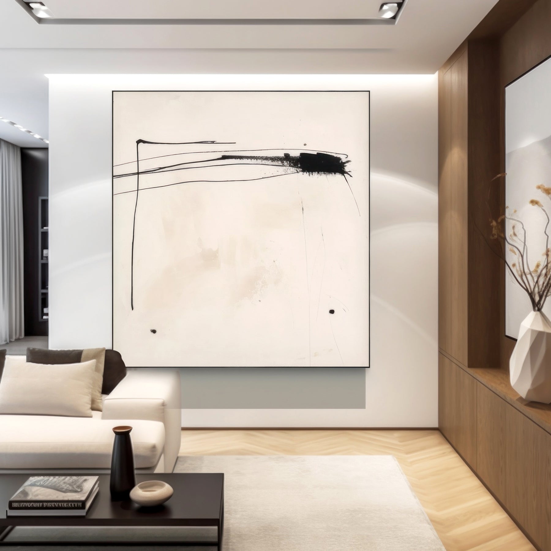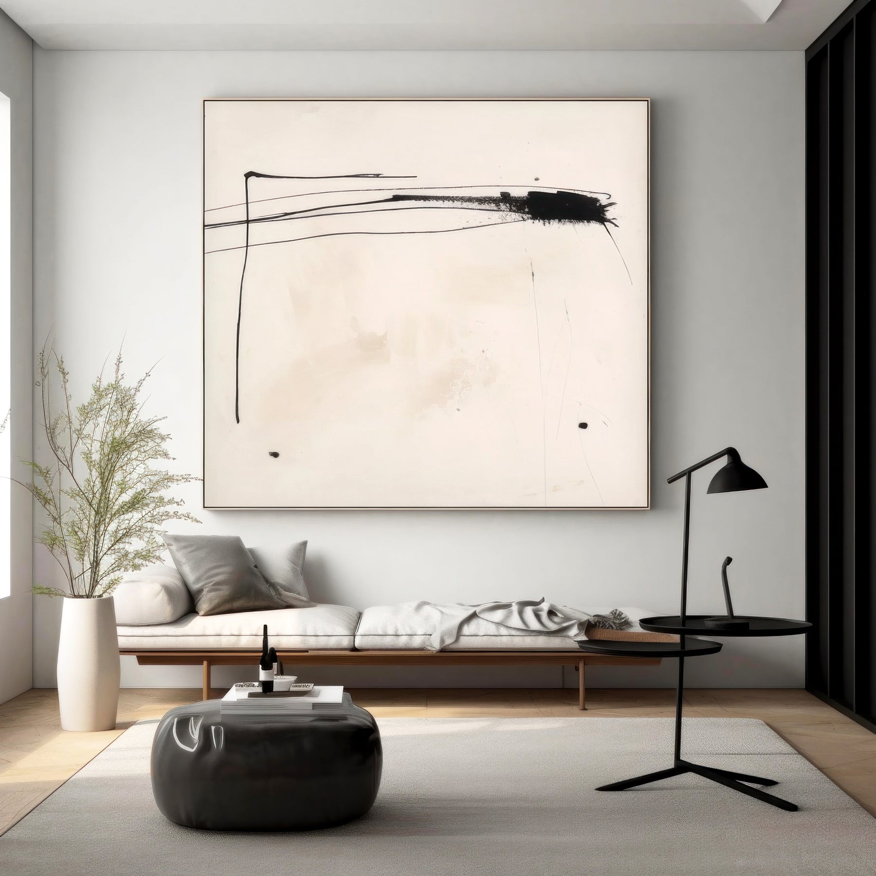 White Black Minimalist Geometric Wall Art